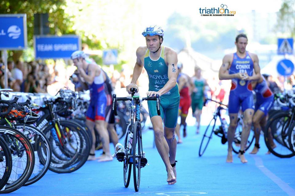 Without Richard Varga in the race, the pace setting was left to Henri Schoeman of South Africa. Henri is an absolutely phenomenal swimmer but I think we missed Vargas very aggressive nature in the swim as it wasn’t very strung out by the end of the 1500 metres. I sat in 3rd for most of the swim and I was feeling pretty comfortable at the pace being set. I exited in 3rd but with a large group in a line trailing I knew it was important to work the first portion of the bike.